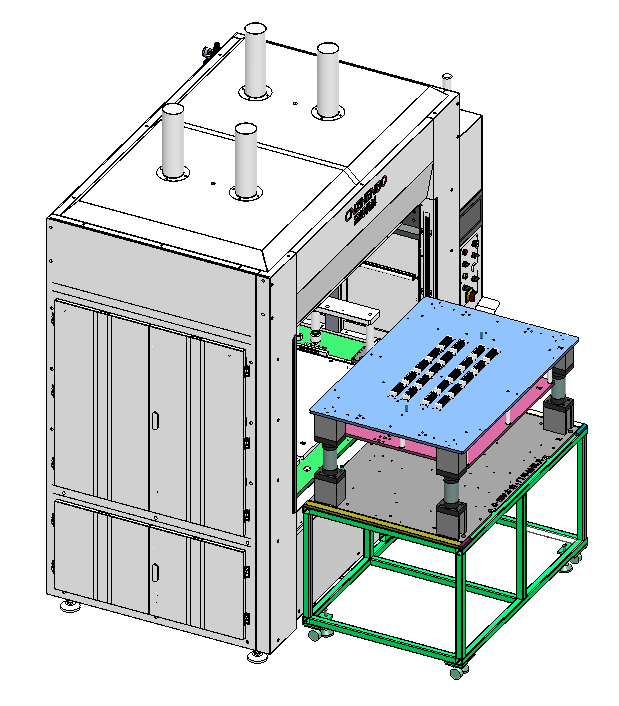 Automatic heat staking machine MSR-MC100S is for automotive door trim assembly specially. Machine staking forced by servo motor system in precision control. Machine staking tooling measurement max to L12800*W1100*H5500 which covers almost automotive door trim size. Machine is designed with 100 sets of temperature control circuits, can be applied to staking max.100 points.